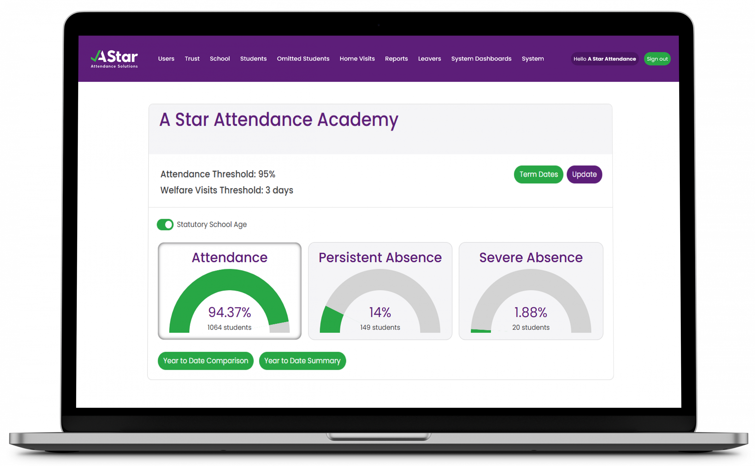 The A Star System is our innovative, expert-led solution transforming how schools manage pupil attendance. By seamlessly extracting data from your existing MIS, it delivers powerful monitoring, tracking, intervention, and reporting, all in one place.